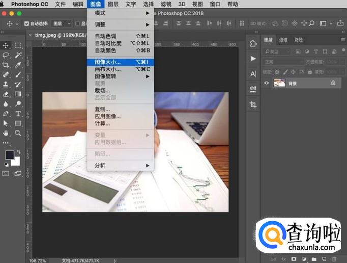 打开图片之后,在上方选项中点击“图像-图像大小”