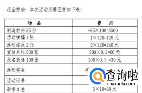 我们做一次校园策划活动,一定要提前规划好自己的资金,经费可以列一个表格,把各个费用流程需要用到的资金都标注清楚,然后有一个大概的了解。