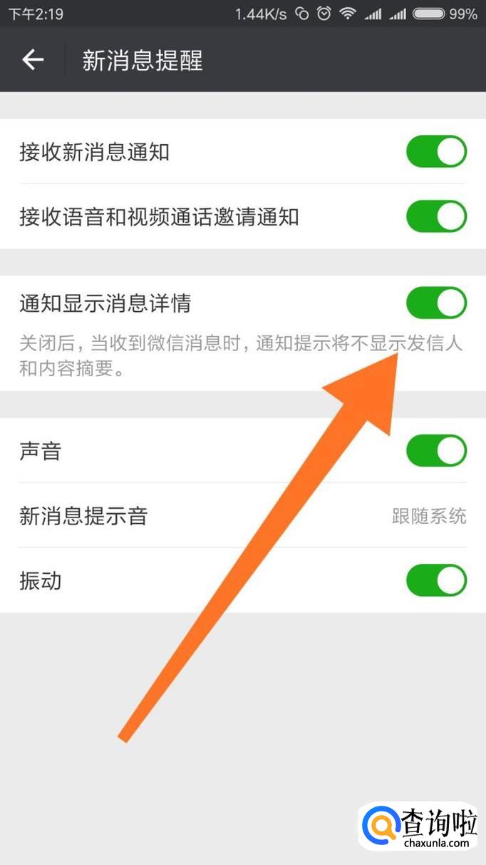 关闭【通知显示消息详情】后面的开关