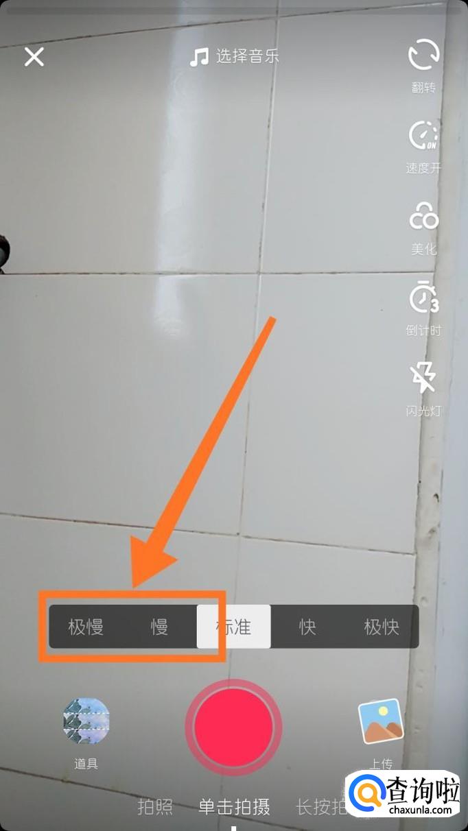 点击拍摄键上面可以调整速度,然后就可以开拍了。