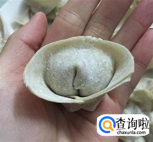 准备好适量的馄饨皮,开始包馄饨啦。更加自己的包法,把馄饨包成元宝形状。
