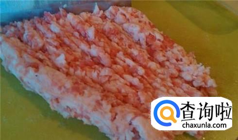 把虾仁和五花肉一起剁碎。在虾仁馅中,加入少许五花肉,可以增加嚼劲,更加好吃哦。