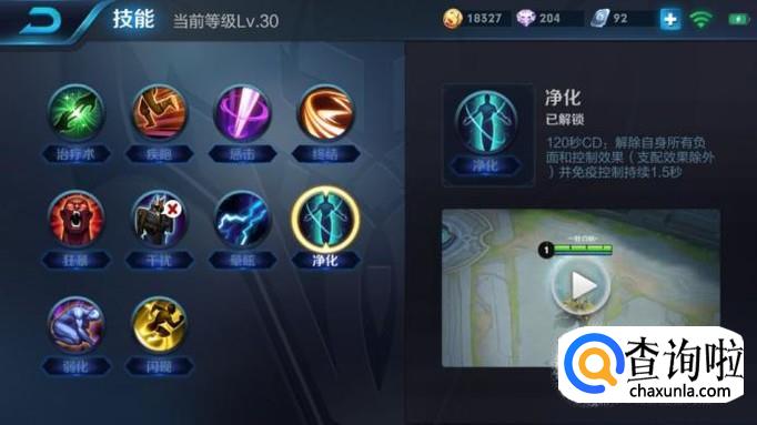 召唤师技能:净化。