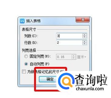 就会出现这样一个小框,点击确定建立一个三列两行的表格。
