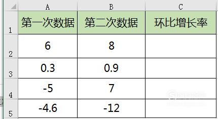 鼠标左键点击单元格C2,输入公式“=(B2-A2)/abs(A2)”。这个公式是要得出B2减去A2的值,比上A2的绝对值的计算结果。