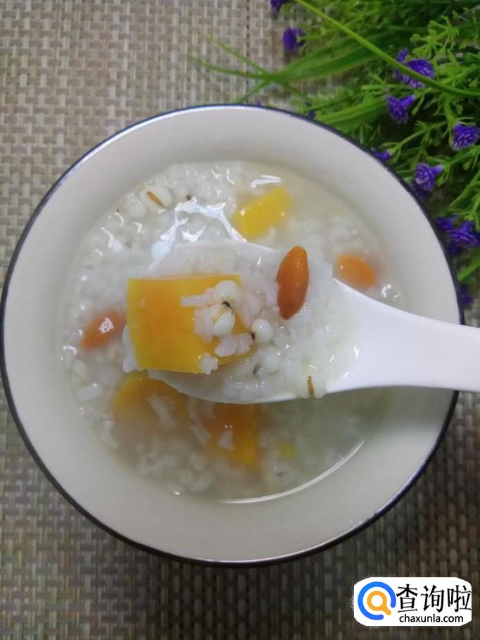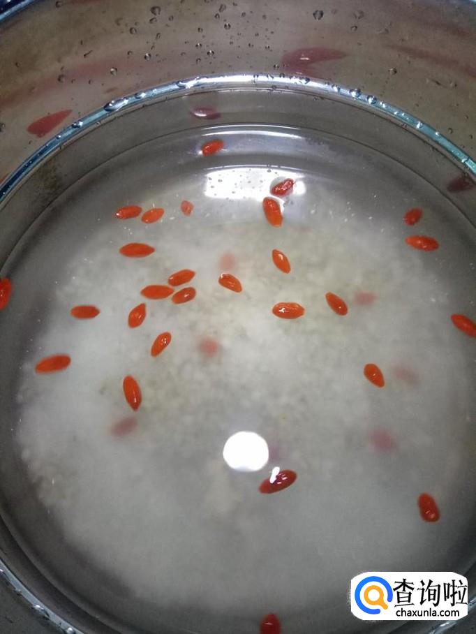 薏米适量,大米适量,枸杞子适量,红薯适量,冰糖适量。