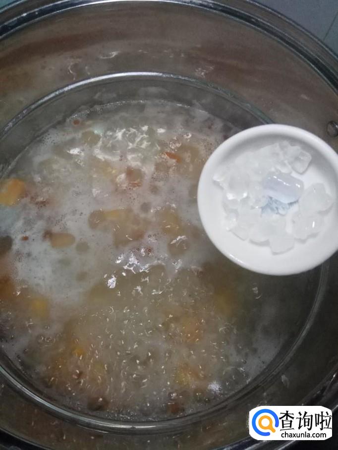 准备适量冰糖,放入锅中,煮至化开。