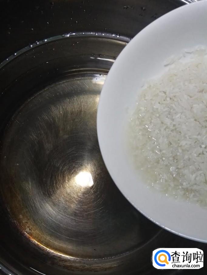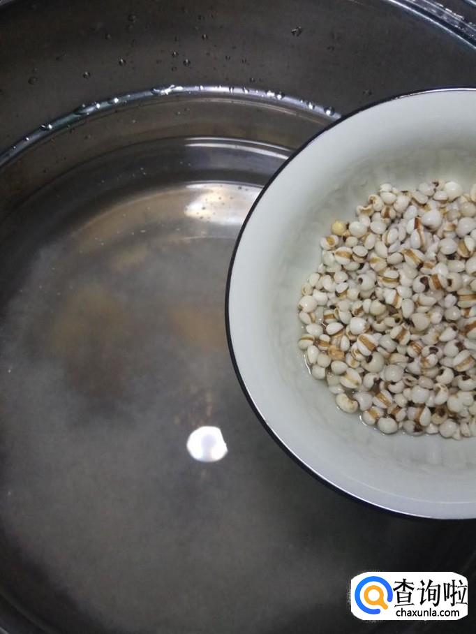 锅中放入清水,放入洗好的大米,再倒入泡好的薏米。