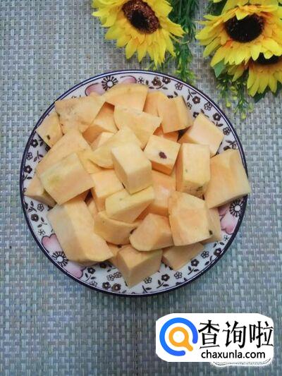 准备一个红薯,洗净去皮后,切成小块儿。