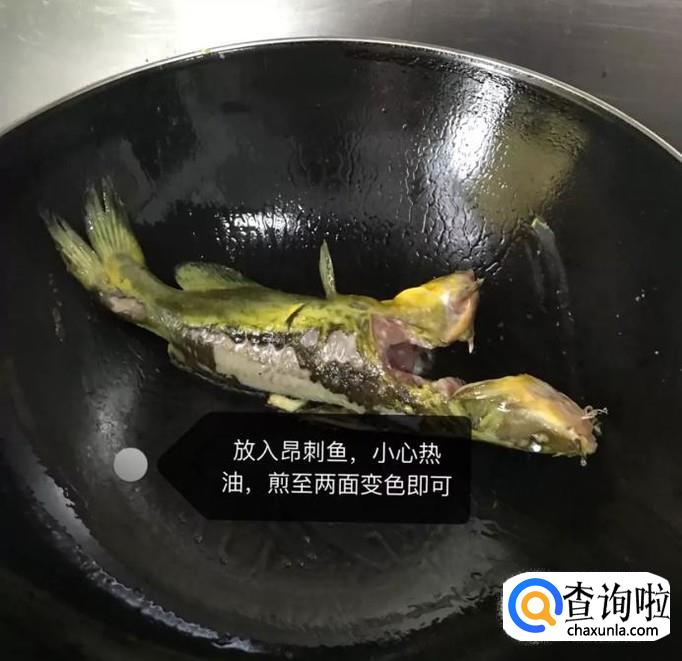 然后往锅中放入昂刺鱼,煎至两面变色就可以了,如下图所示。