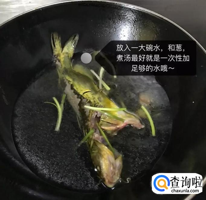 接着往锅中放入一碗的清水和适量的葱,如下图所示。