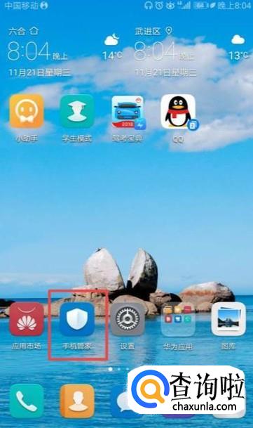 首先,我们打开我们的手机,然后我们点击手机桌面上的手机管家;