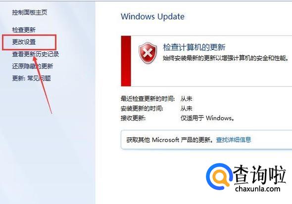 进入到【Windows Update】页面后,接着点击页面左侧的【更改设置】功能。