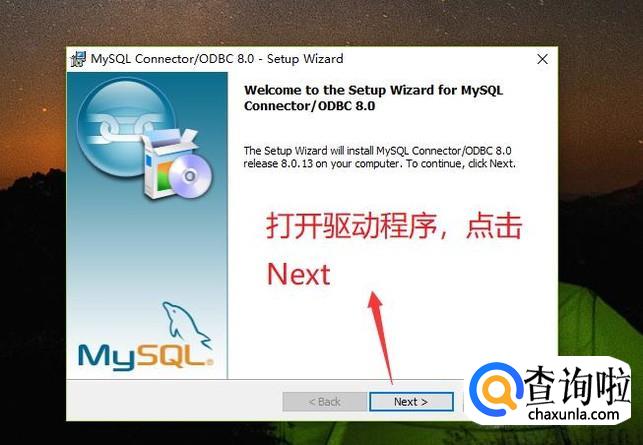 首先要下载MYSQL驱动程序,点击驱动程序进入安装界面,点击Next按钮