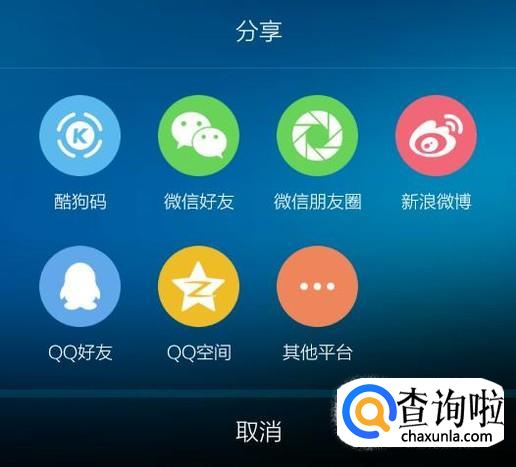 点击选择分享后,在弹出的选择框内找到并点击想要的分享方式。