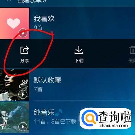 找到自己想要分享的歌单,并长按一段时间后点击选择分享