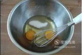 首先我们将两个鸡蛋打碎入碗,然后加入细砂糖,再用搅拌器打匀,打得约碎越好。