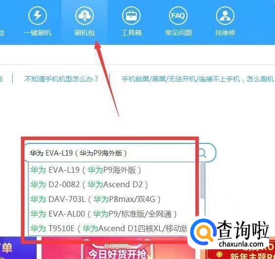 连接成功后,我们点击导航上的“刷机包”栏目进入,然后我们通过搜索的方式查找我们的手机型号固件。