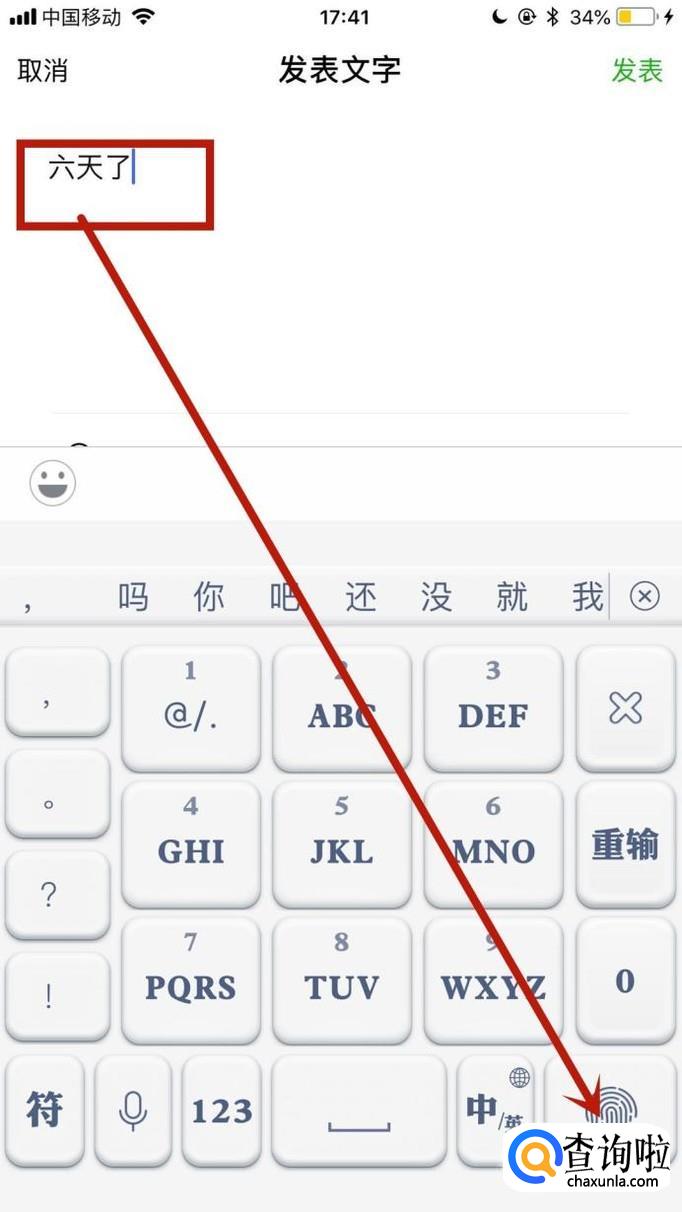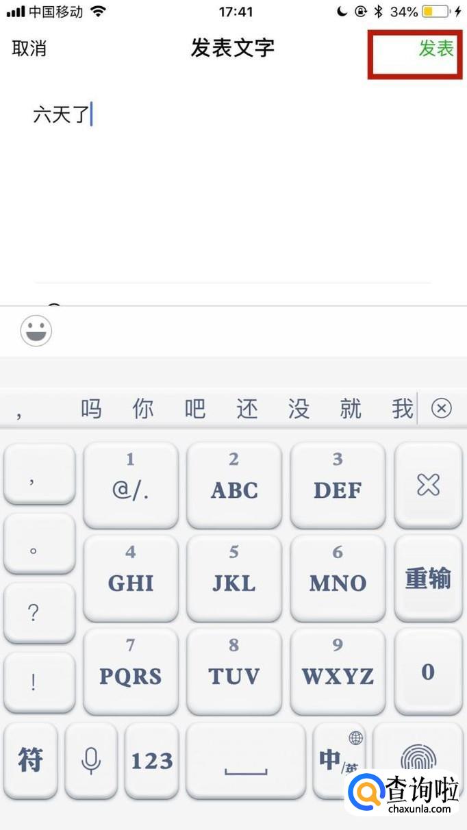 通过以上操作,我们就成功发表了只有文字的朋友圈了。你学会了吗?赶快动手试一试吧。