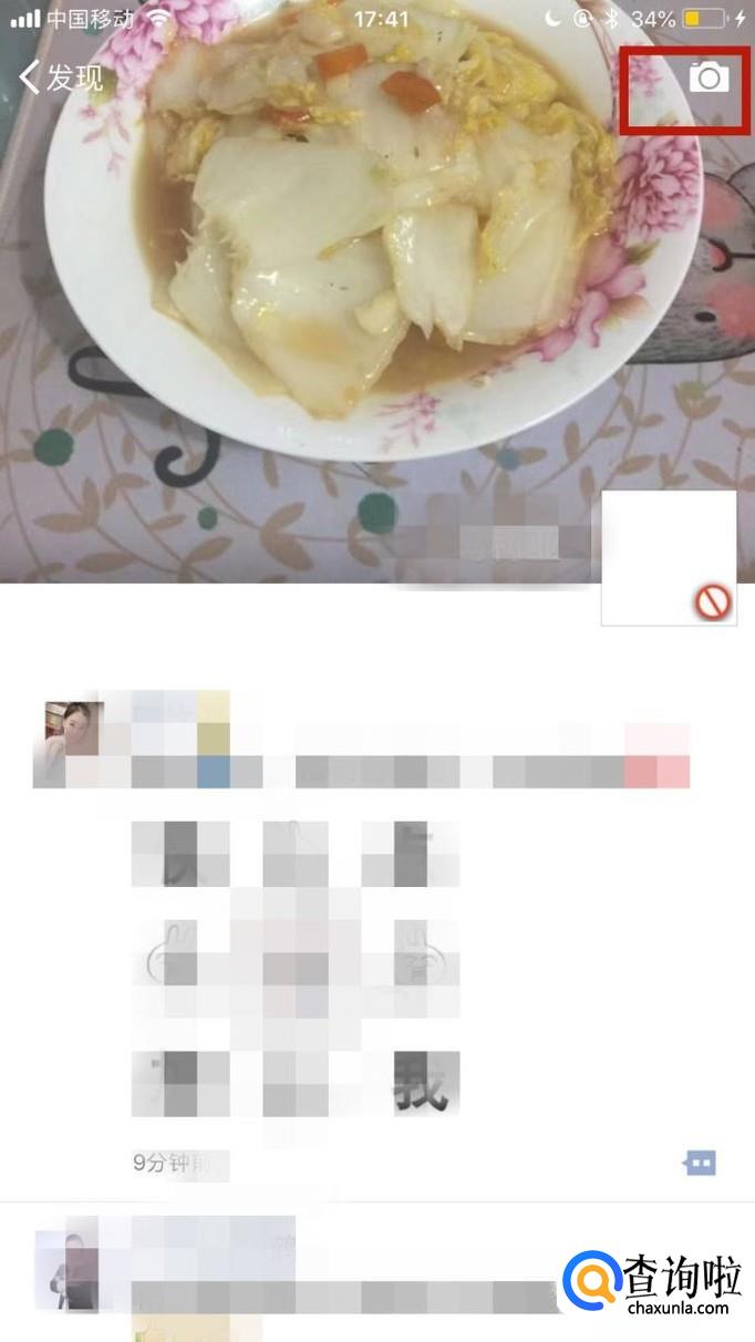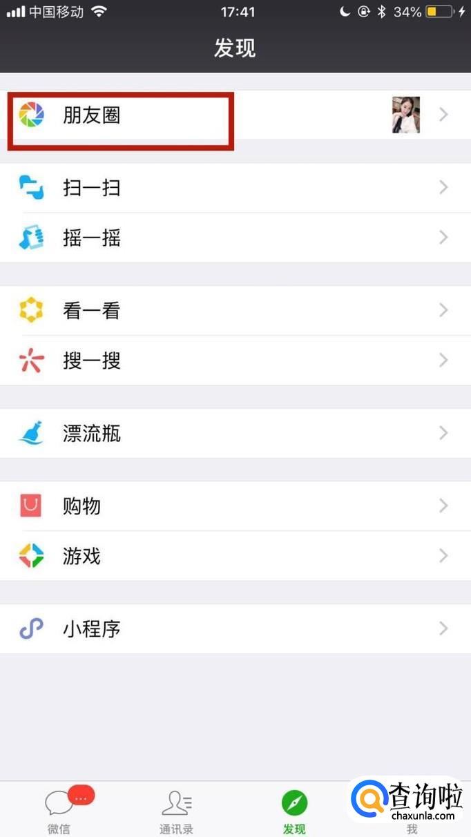 首先点击微信中的朋友圈,如下图所示。