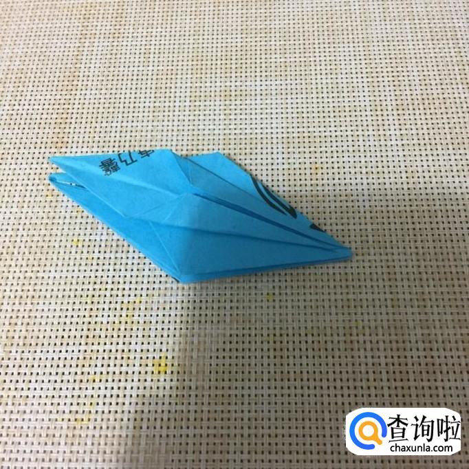 然后把底角往内侧折,接着把顶角往下折,如下图所示。