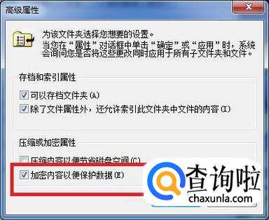 进入之后,勾选加密内容以便保护数据,然后点击确定命令;