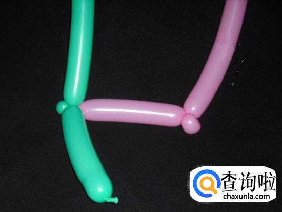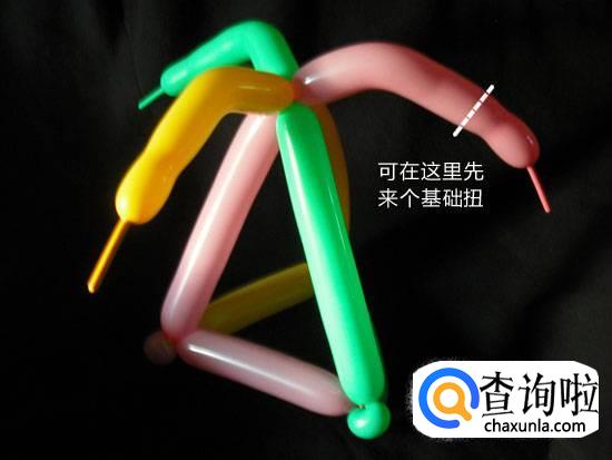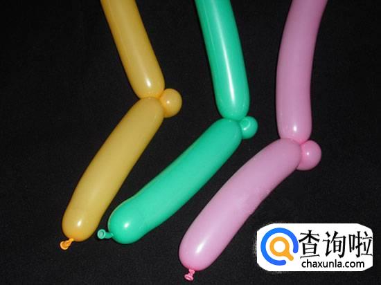 每个气球的气嘴处打结固定,然后在距离气嘴约1个脚印长的地方先来个“基础扭”,再往前2.5厘米的地方再来一个基础扭,接着进行“单节扭”。
