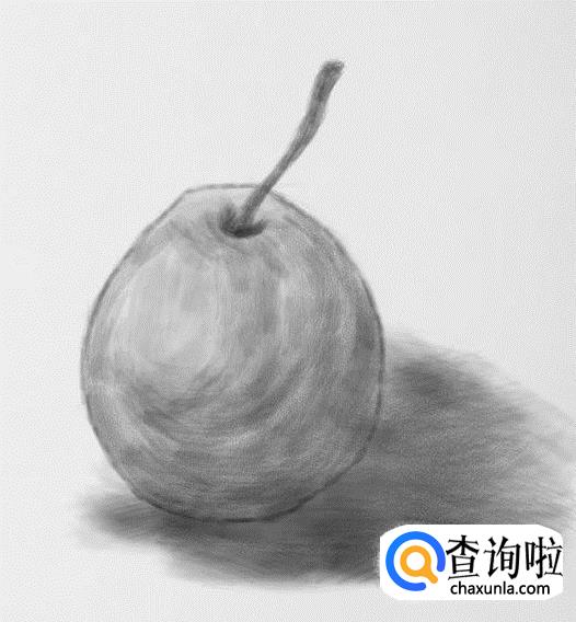 画好水果上面的明暗底色之后,我们再在右侧画出水果的阴影区域,如图所示: