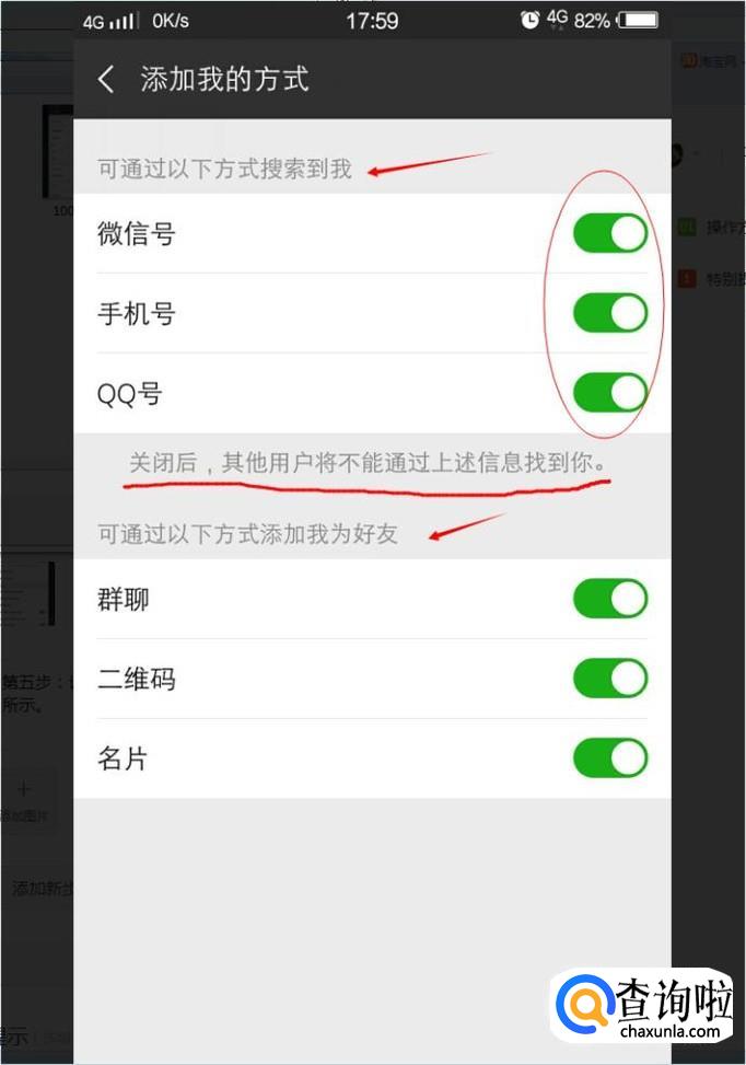 设置别人添加你的方式,想要的打开,不想要的关掉。设置完成。如图所示。