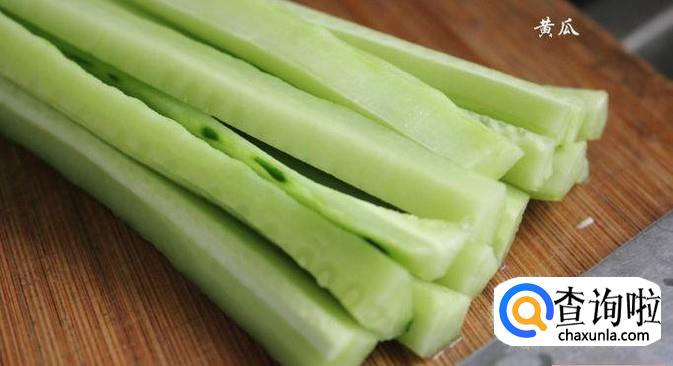 黄瓜洗净,切成条。用盐、白糖、味精、酱油、醋、料酒、湿淀粉、鲜汤兑成滋汁。