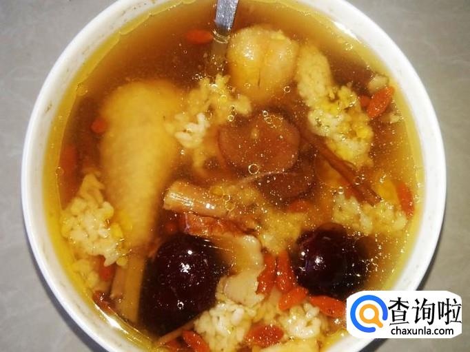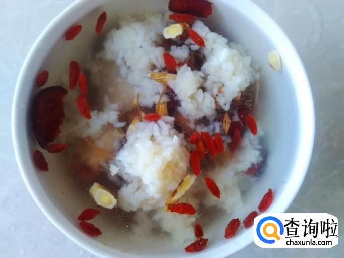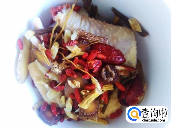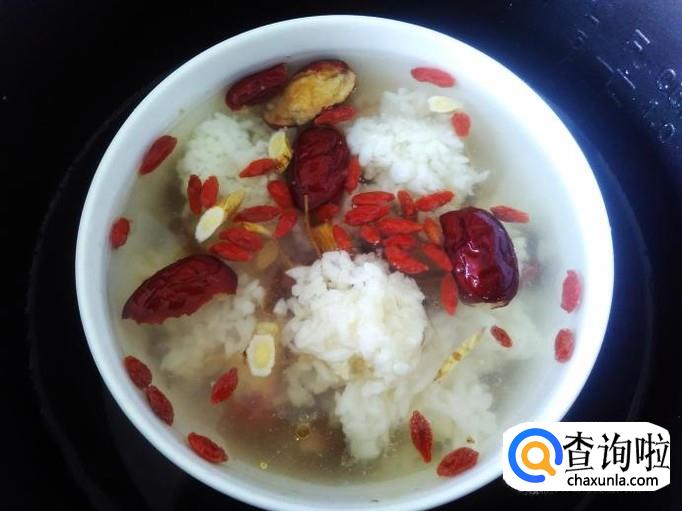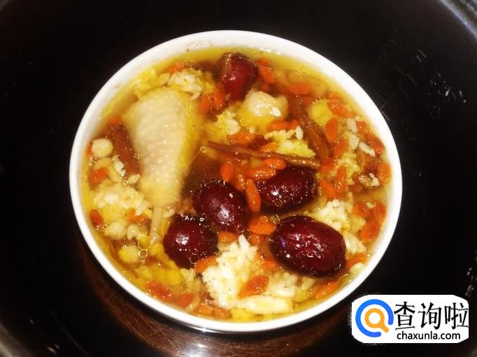 鸡腿1个,糯米甜酒半碗,当归、黄芪、黄精、党参、枸杞、红枣适量。