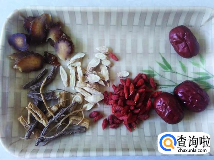 当归、黄芪、黄精、党参、枸杞、红枣准备好。