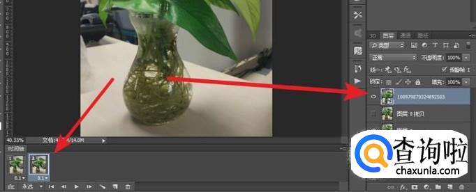 第二个关键帧,打开另一张图片左侧的小眼睛,时间间隔使用默认的0.1S就可以;