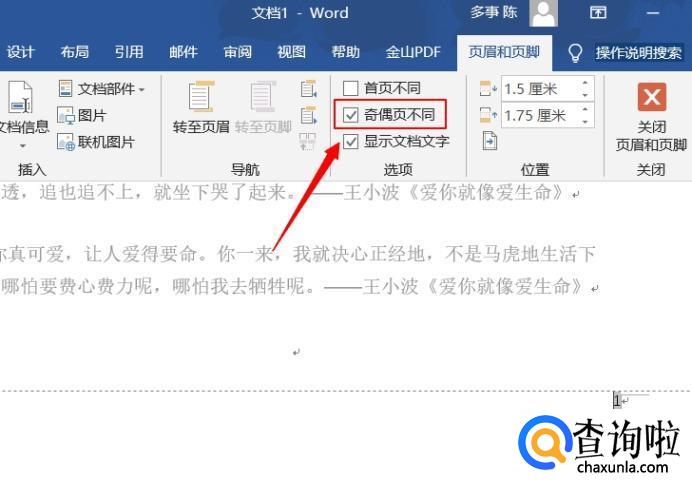 当然,也可以将奇数页和偶数页分别添加不同类型的页码,点击“页眉与页脚”中的“页眉页脚”选中“奇偶不同页”,就可以分别添加不同类型的页码了