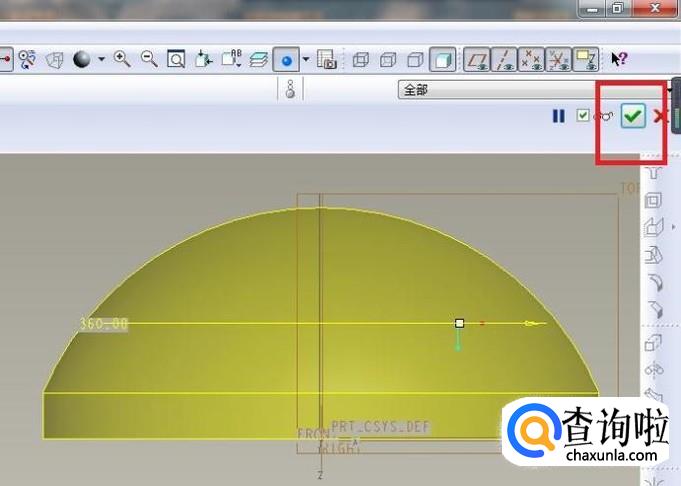 14、点击右边工具箱最下方的√,完成并退出草绘。