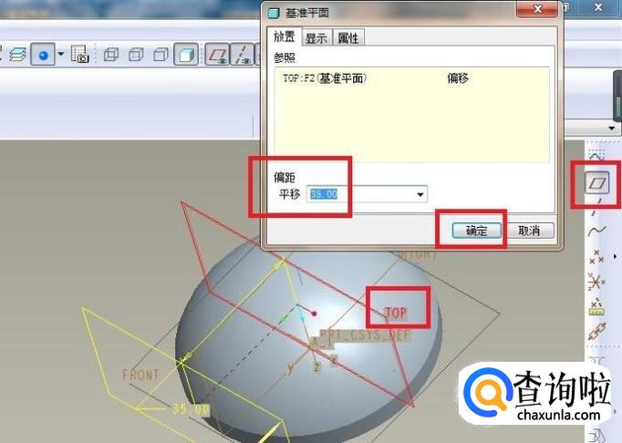 然后对话框中的“草绘平面”一栏选择“TOP面”,