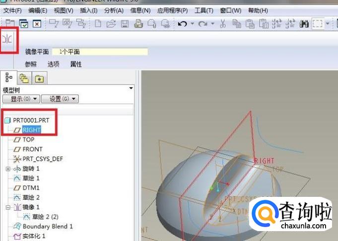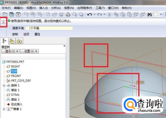 然后选择“TOP”面为镜像平面,