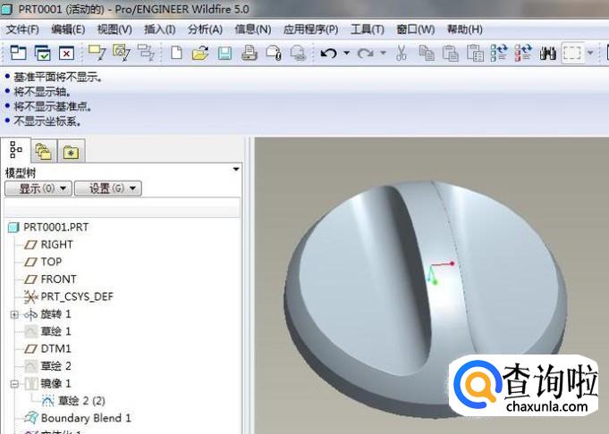将所有的基准面、基准轴、草绘线段等全部隐藏,