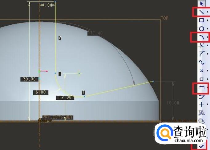 软件右上角出现一个“草绘”对话框,