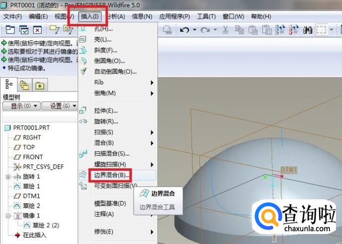 成功激活“边界混合”命令。