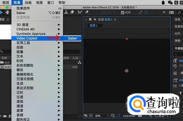 接着点选纯色固态层,选择“效果-video copilot-saber”