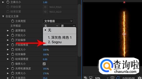 选择主体类型为文字图层之后,在“文字图层”中选择相应的文本图层,比如“sogou”