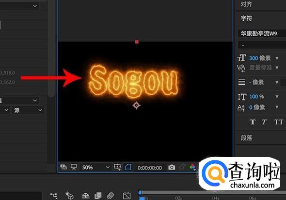 成功设置之后,我们在合成中就能够查看效果了,通过调整其他数值来得到一个需要的图案,这样我们就成功将saber应用在文字上边了。
