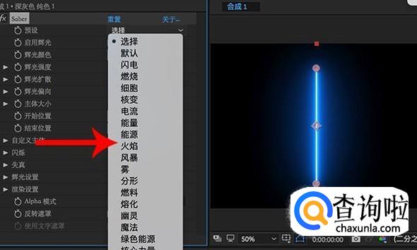 添加saber效果之后,在效果面板中选择“预设”,然后选择一个自己需要的效果。