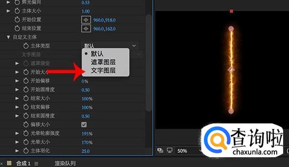 效果设置完成之后,点击“自定义主体-主体类型”,将主体类型设置为“文字图层”