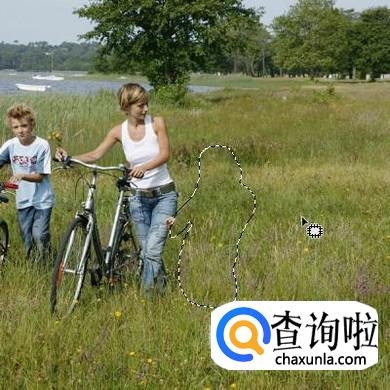 鼠标点住选区,向右边挪,当看到选区内小女孩完全不见了再放开鼠标。