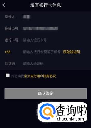 填写银行卡信息,然后点击“确认绑定”即可完成实名认证,如图所示。