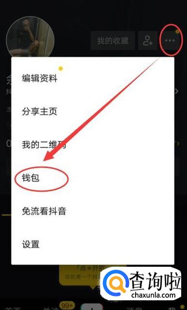 进入到该页面之后,点击图示位置,打开菜单栏,点击“钱包”,如图所示。