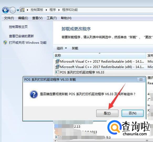 系统会提示你是否确认卸载打印机驱动,我们点是就行了。下载完成后系统也会有提示!