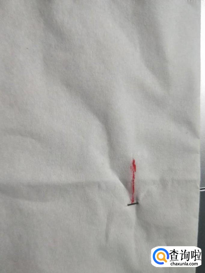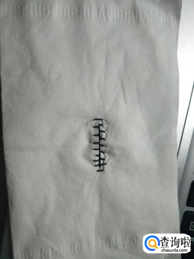 我们用纸巾来模拟衣物,红色线条处为锁眼